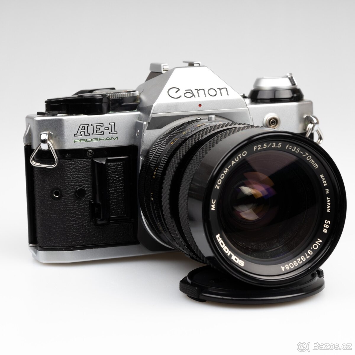 Canon AE-1 Program včetně poměrně světelného objektivu Soligor 35-70mm s nízkou clonou f/2.5-3.5