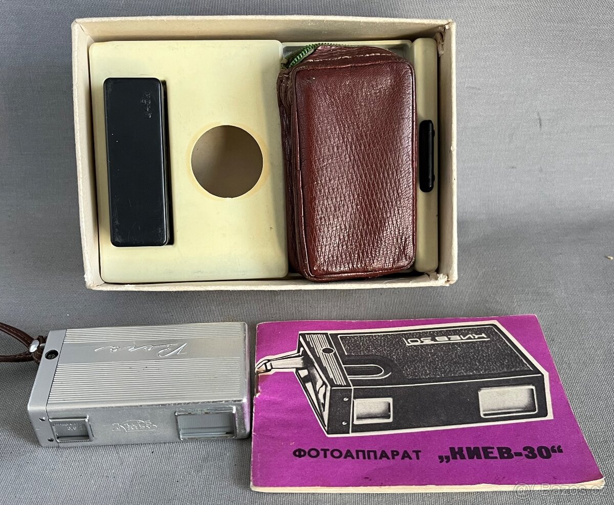 Nabízím fotoaparát pro šestnácti milimetrový film. Návod je pro KIEV 30, mechanicky téměř
