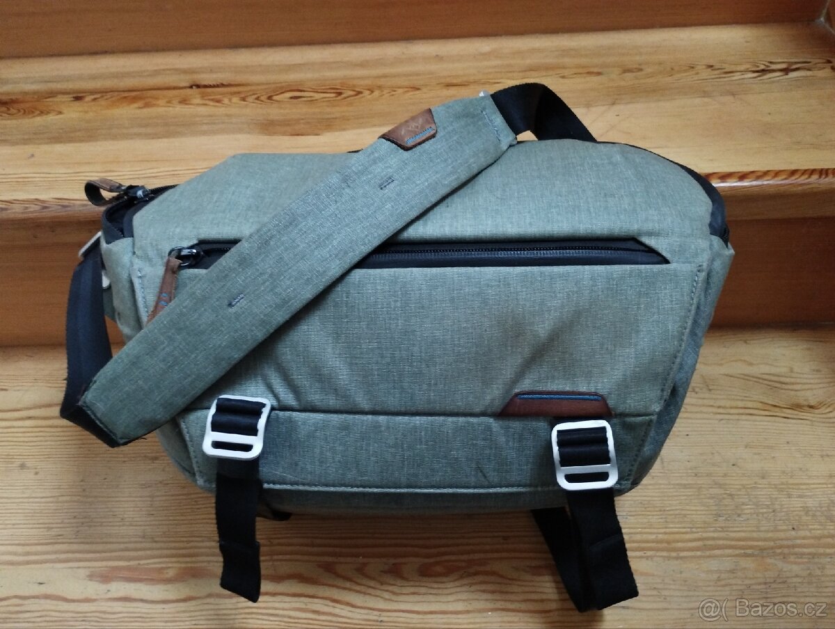 Prodám používanou tašku přes rameno Peak design everyday sling 10l, bohužel při praní pustila barva z kůže a látka je lehce flekatá.