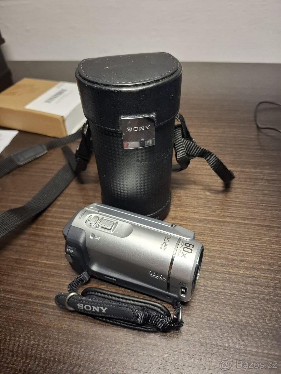Digitální videokamera SONY HANDYCAM 60x optical zoom, 2000x digital zoom, Carl Zeiss Vario-Tessar, málo použitá, jako nová, vč. orig.pouzdra, baterie a nabíječky.Lehká kompaktní kamera Handycam® zachytí až 6 hodin videa ve standartním rozlišení do 8 GB vnitřní paměti. Vysoce výkonný objektiv Carl Zeiss® s 60x zoomem a zoom mikrofonu. Rychlé spuštění otevřením displeje LCD, stabilizace obrazu SteadyShot.