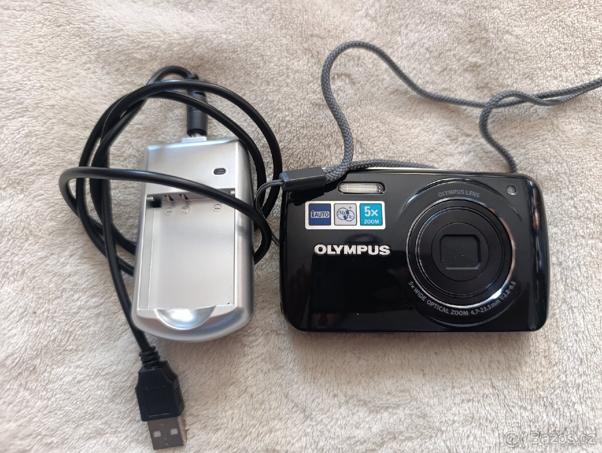 Plně funkční fotoaparát Olympus 14 MPX, baterie, nabíječka a 8GB paměťová karta. Pěkný stav. Osobně, zasilkovna nebo balikovna.