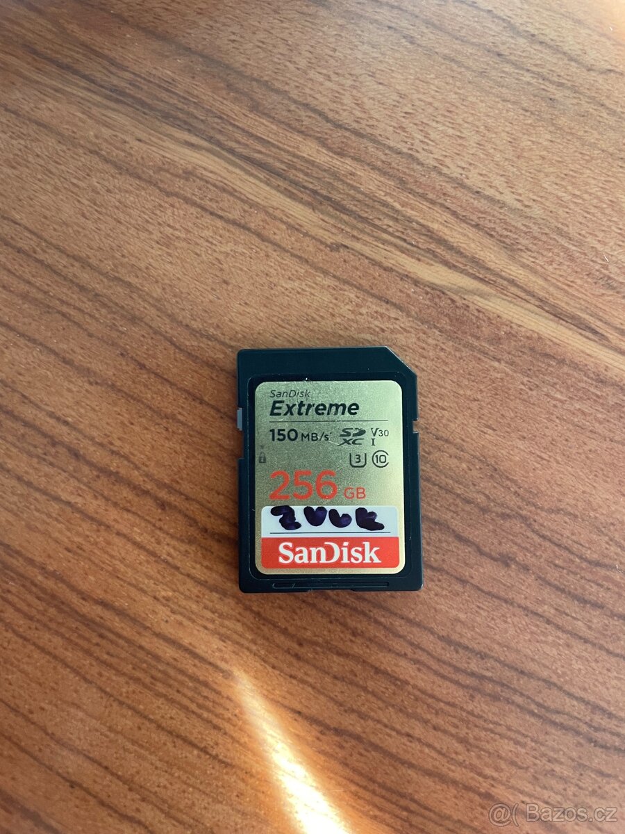 Prodám SanDisk SDXC 256 GB Extreme, paměťovou kartu s vysokou rychlostí – ideální pro DSLR, bezzrcadlovky, akční kamery, 4K video i fotky.