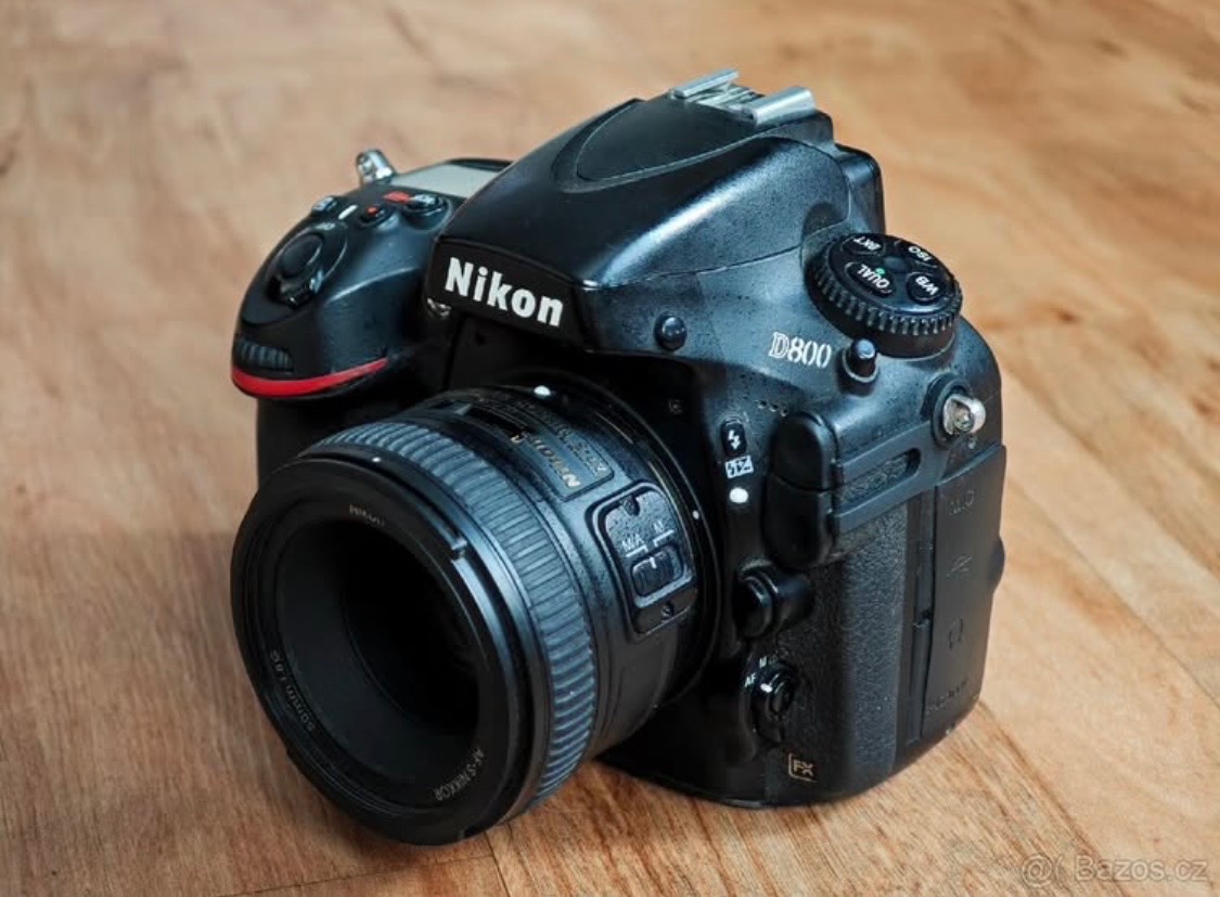 Tělo Nikon D800 + Nikon 50/1.8 + Tamron 70-300, grip, 2 baterie, nabíječka, SD Karta 128GB + 256GB, krytky, originál popruh. Už má něco za sebou, má nacvakáno cca 276000, ale stále perfektně funguje.