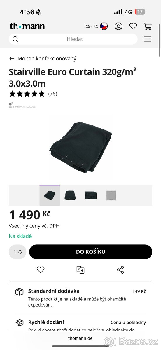 Jevištní molton opona. Nová!!! Černa latka ktera pohlcuje světlo a zvuk.. specifikace viz foto. Je uplne nova zabalena v krabici.. objednal jsem dvakrat a nestihl vratit ve 14denni lhute a navic je to nemecka firma co posila do česka a cele evropy.. takze ode ke ho mužete mít o chluo levněji plus zdarma přidam novou šnuru na pověšení v hodnotě 200lč.. celkem za vše 1400kc