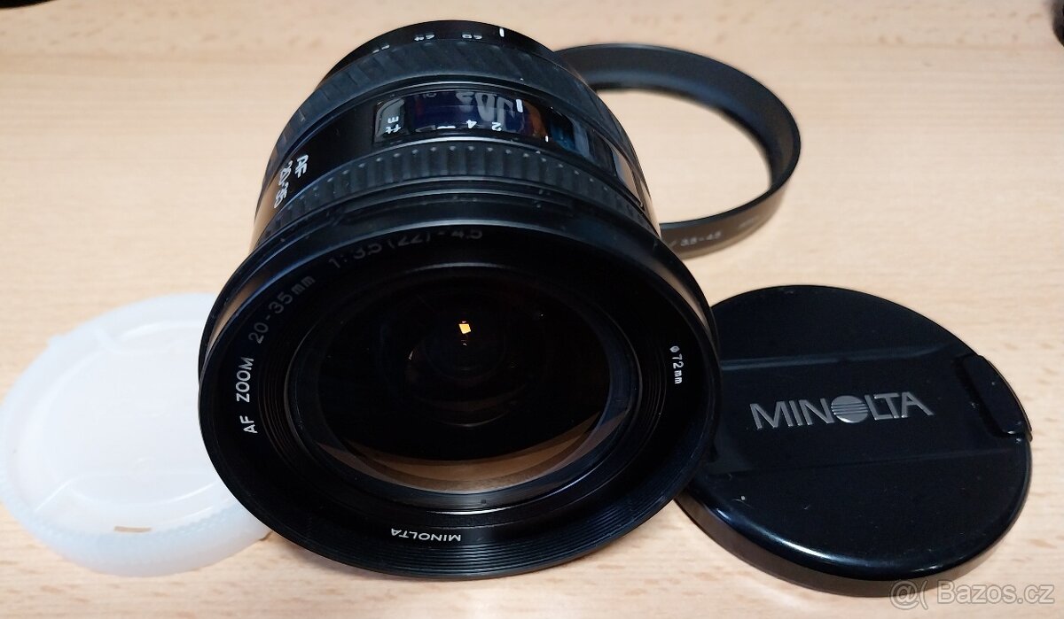Predám používaný objektív Minolta AF 20-35mm 1:3.5-4.5 na Minoltu/Sony s oboma krytkami, so slnečnou clonou a s pôvodným záručným listom.