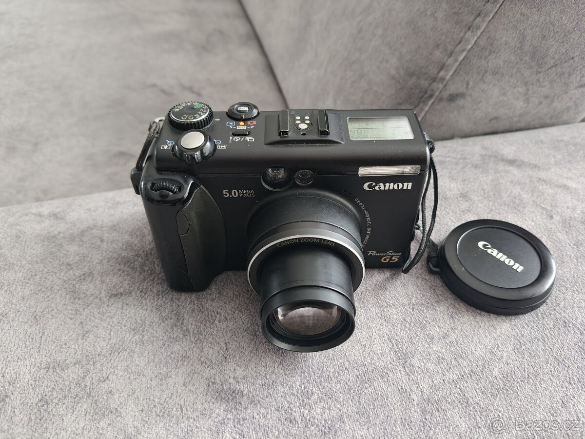Prodám digitální fotoaparát Canon PowerShot G5 se světelným objektivem f2,0 a výklopným displejem. Podpora RAW. Ve své době to byl špičkový přístroj s cenou kolem 20 tisíc. Má skvělou ergonomii a jeden z nejlepších objektivů ve své kategorii.