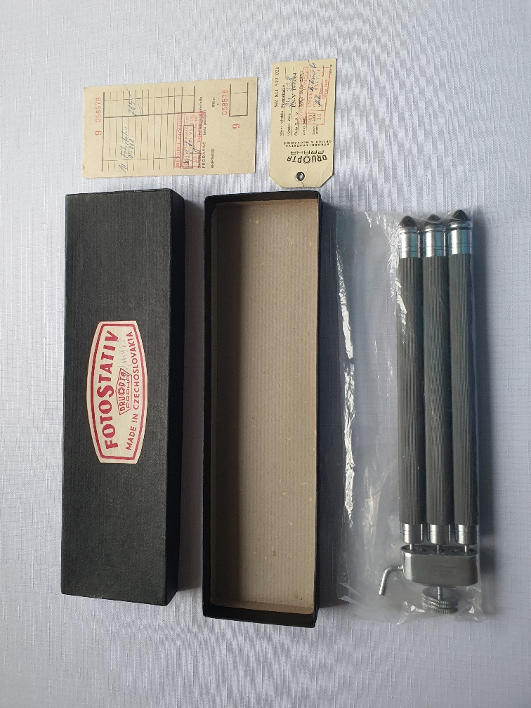 Prodam fotostativ z roku 1965 - [21.1. 2026]Prodám fotostativ z roku 1965 v perfektním stavu, teleskopický bez vůlí neopotřebovaný v originální krabici s dokladem o záruce jako příslušenství jsou dva spouštěče blesku, pro sběratele??