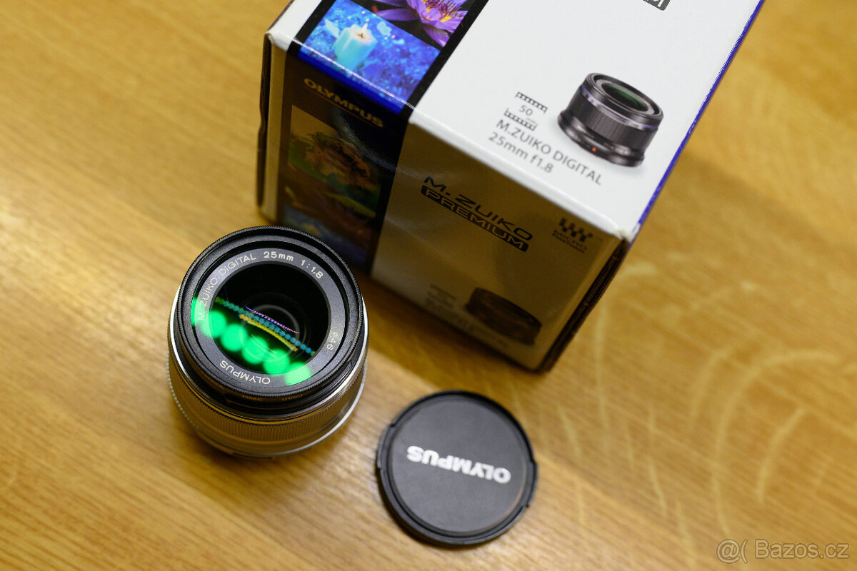 Prodám Olympus M.Zuiko 25/1.8, stříbrný, v krásném stavu nového objektivu bez známek použití. Ekvivalentní k 50mm FF objektivům. Optika čistá, krytá UV filtrem. Kompletní balení s krabičkou. Osobní odběr možný v Brně/Náchodsko.