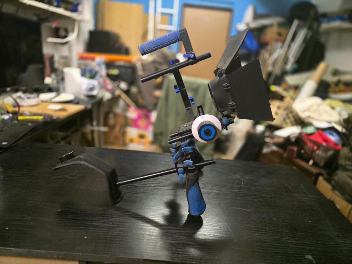 Ramenní stativ pro zrcadlovky s matte boxem a follow focusem.
