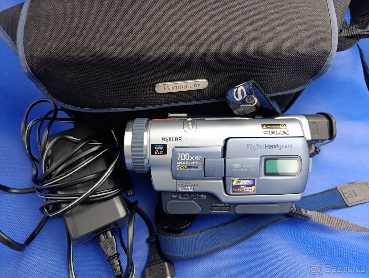 Videokamera Sony CCD-TR620 - [28.12. 2025]Plně funkční kamera Sony Video8, brašna, adaptér a AV kabel. Zachovalý stav. Baterie je KO. Kamera přehrává, přetáčí i nahrává. Vše co je na fotkách. Osobně, zasilkovna nebo balíkovna.