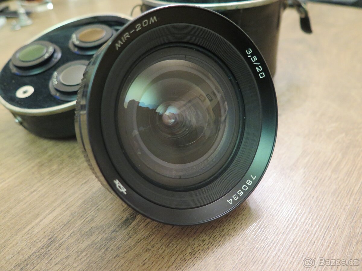 Prodám pěkný , unikátní objektiv Mir-20M 20 mm f3.5 MC s manuálním ostřením pro bajonet M42.Součástí jsou krytky, 3x filtr a pouzdro. Filtry se nasazují ze spodu objektivu.