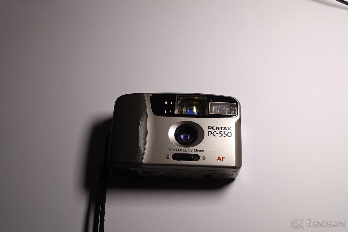 Analogový fotoaparát Pentax PC 550 který funguje na 35mm Film. a dvě AA tužkové baterie. Plně funkční ve stavu jak na foto. Pro více informací můžete napsat