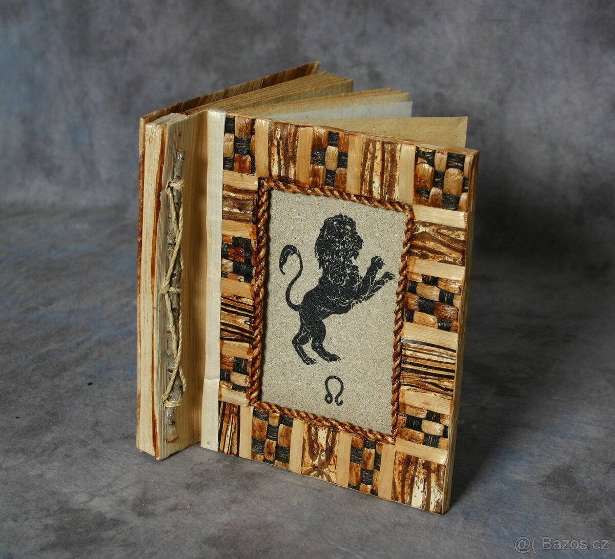 Nové ručně dělané fotoalbum 10/15 z přírodního materiálu/úlomky dřeva-ruční papír/na 20ks fotografií