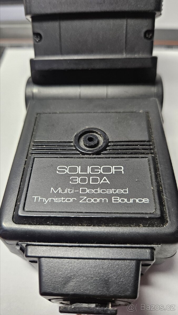 Analogový blesk Soligor se směrem číslem 30, nepoškozený, nemá využití.