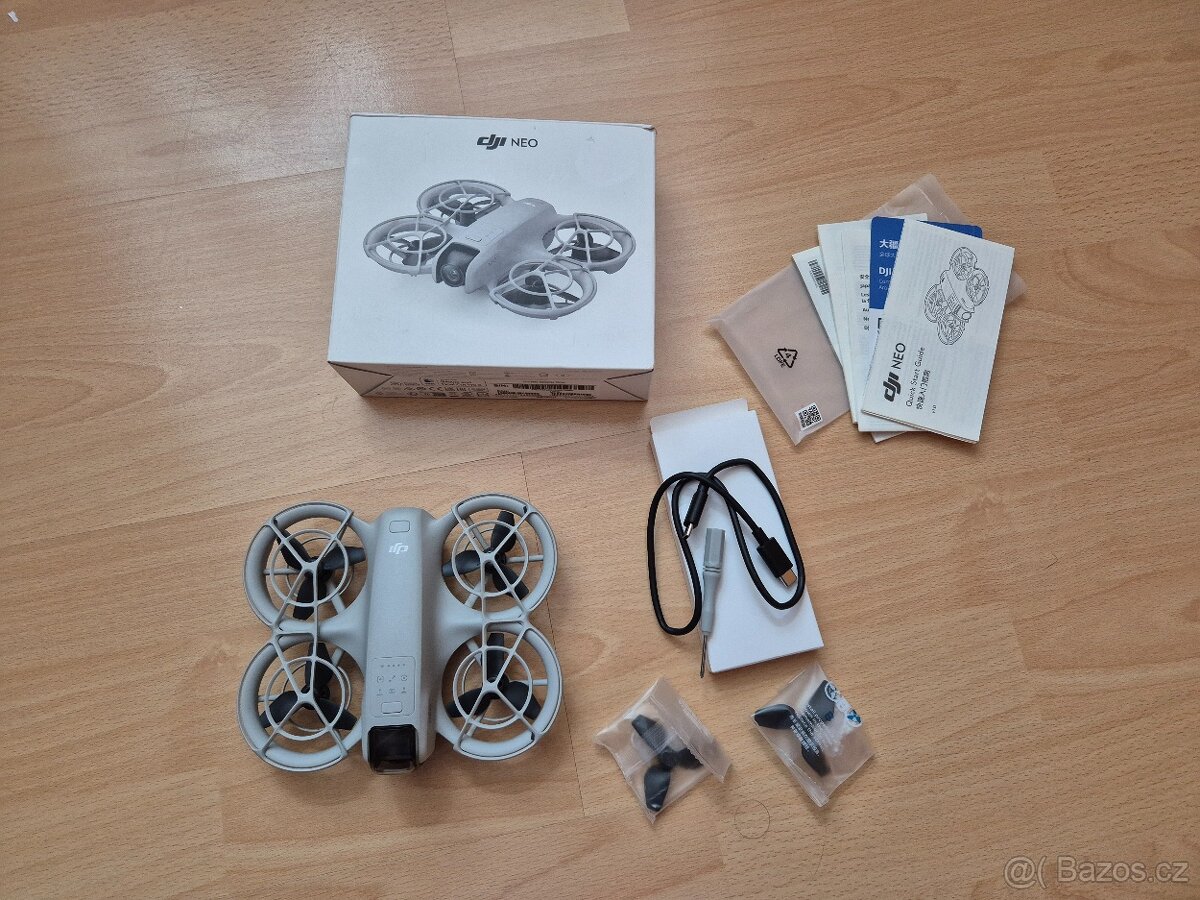 Prodám plně funkční dron DJI NEO součástí prodeje je dron s 4k kamerou který lze ovládat navolenym programem přímo na dronu nebo přes mobilní aplikaci vudea/fotky se ukládají do interního 22gb úložiště k dronu je 1x pohonný akumulator,krytka kamery, propojovací kabel, 2x náhradní vrtule a servisní šroubovák, manuály, originální krabička vše viz. foto