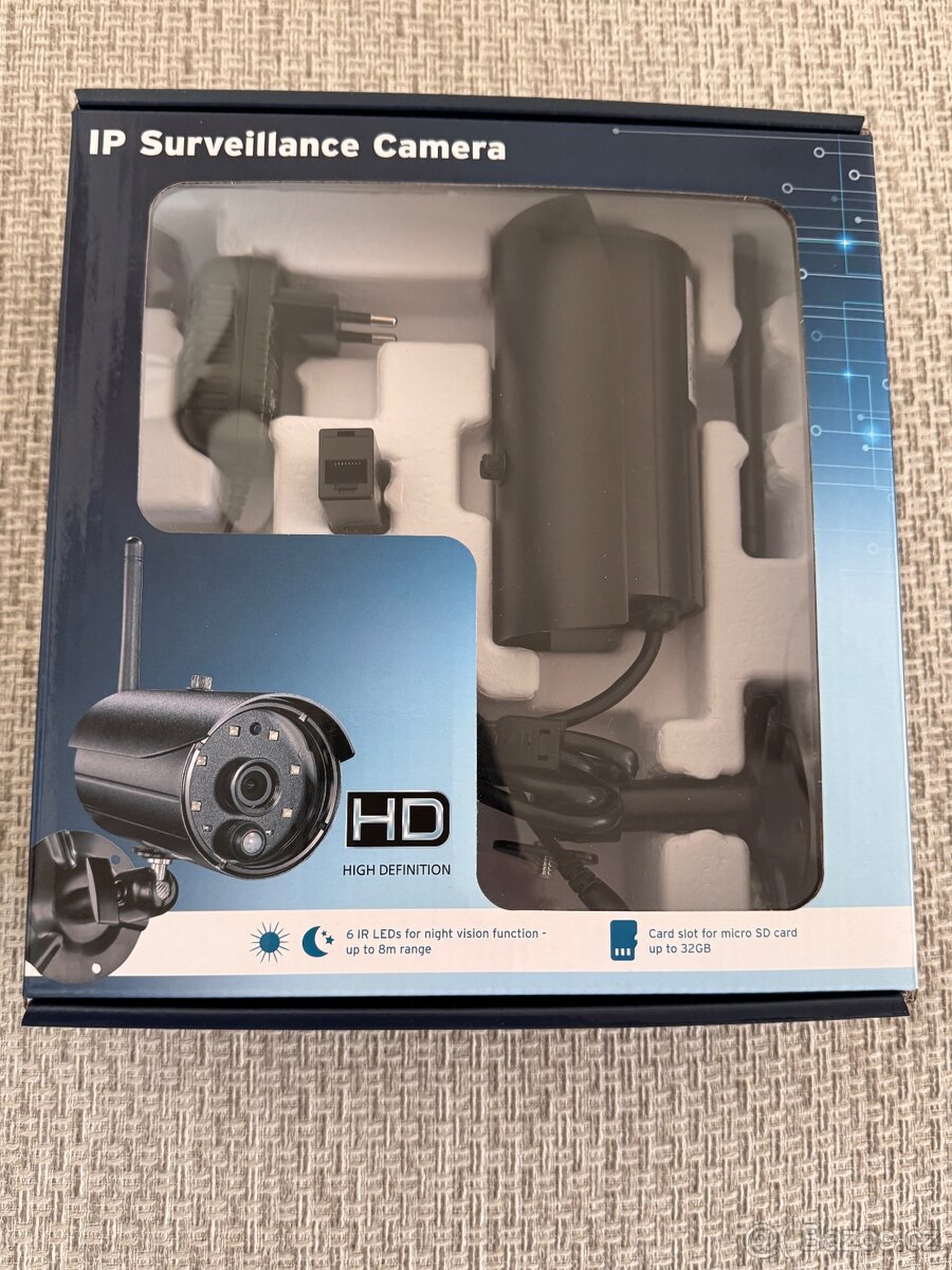 Obsah: IP kamera, sitový adaptér**, WLAN anténa, drzak pro montáž na stěnu, připevňovací materiál, návod k obsluze