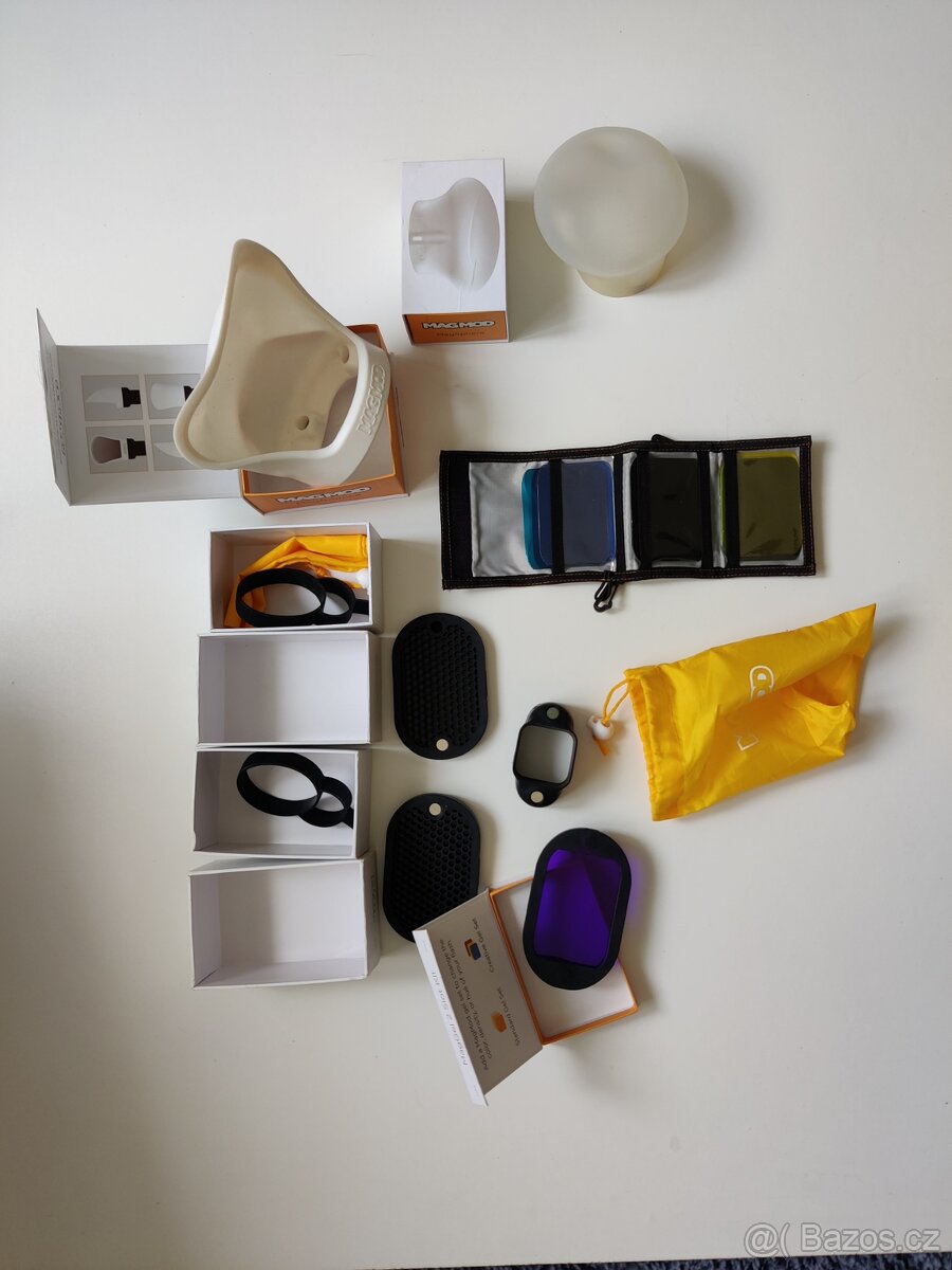 Prodám kompletní sadu originálních světelných modifikátorů MagMod pro externí blesky. Jde o nejrychlejší a nejspolehlivější systém na trhu – vše drží pomocí silných magnetů, takže filtry a difuzory vyměníte během sekundy i potmě.